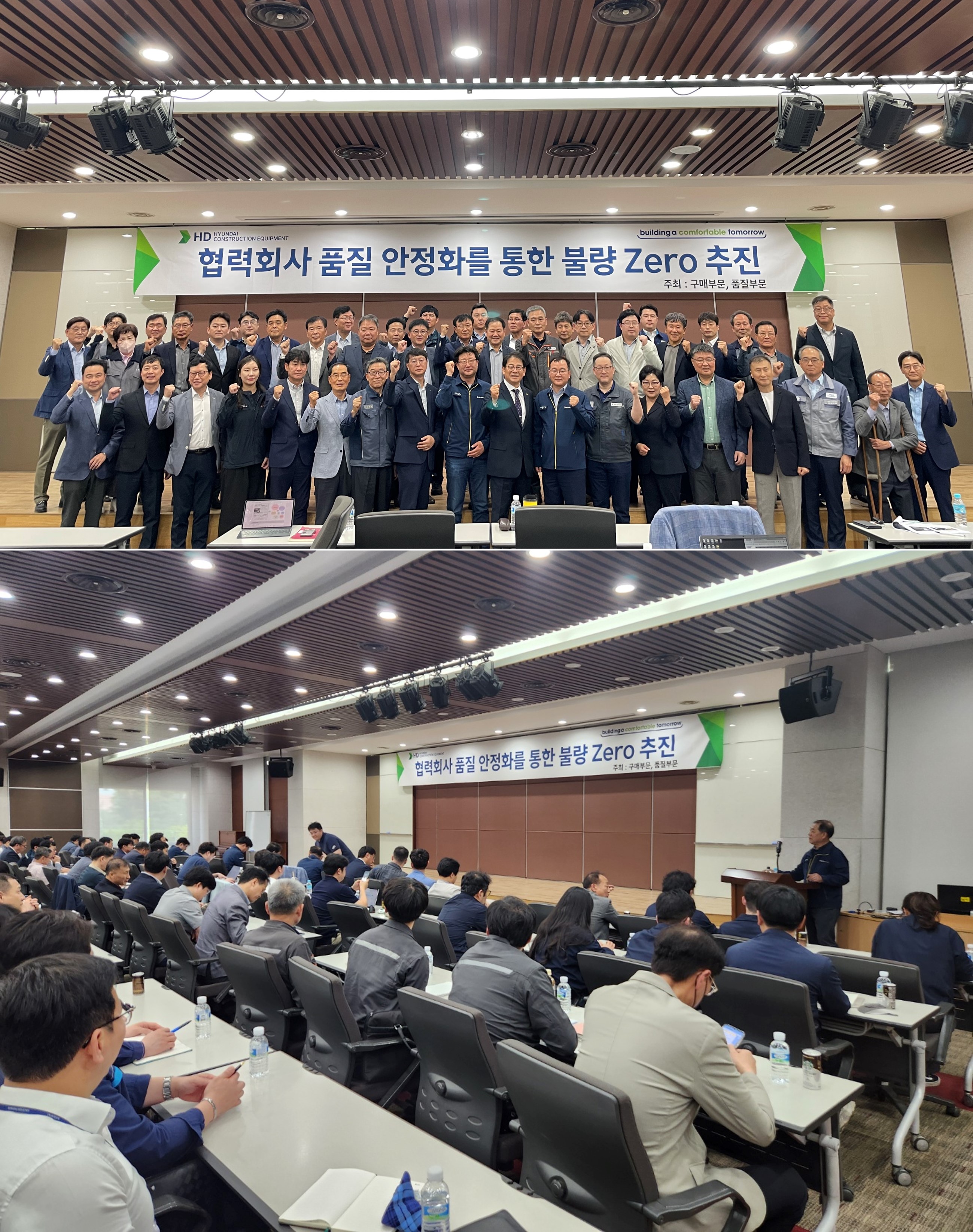 △ HD현대건설기계가 5월 10일 울산 인재교육원에서 ‘협력회사 품질 안정화를 통한 불량 Zero 추진’ 정책 설명회를 개최했다.