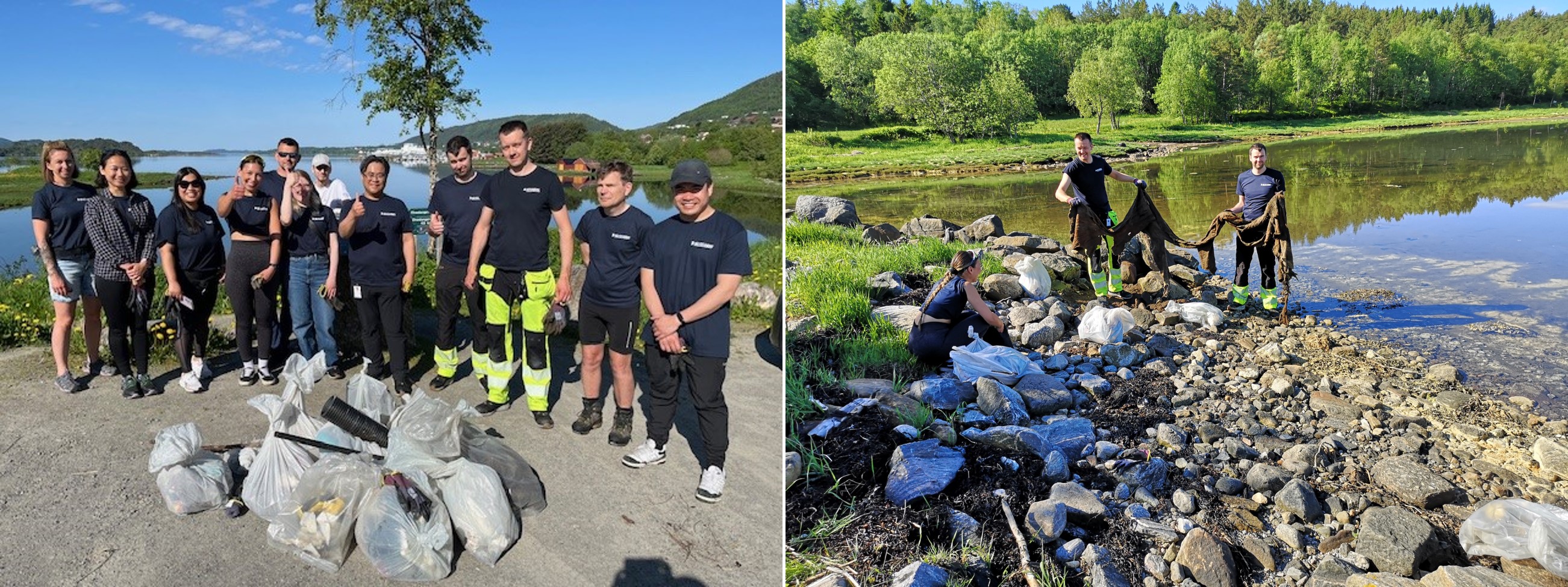 △ HD현대인프라코어 노르웨이법인 임직원들이 환경정화 봉사활동에 참여하는 모습