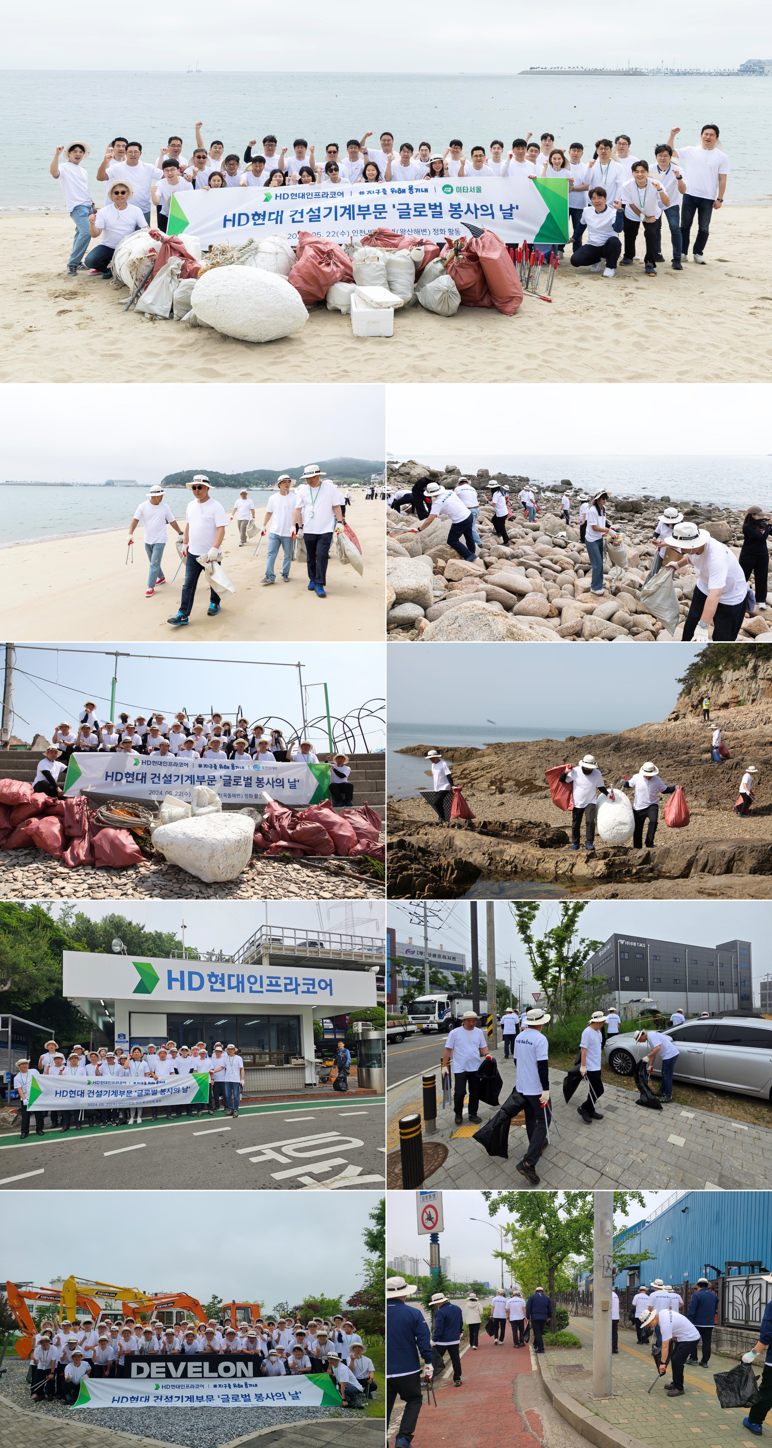 HD현대사이트솔루션, HD현대건설기계, HD현대인프라코어는 22일(수) 한국을 비롯, 중국, 인도, 미국, 인도네시아 등 전 세계 총 8개국 1,300여 명의 임직원이 참여한 가운데 사업장 인근의 바다, 숲, 하천 등지를 찾아 환경정화 활동 및 생태계 보전에 나섰다.