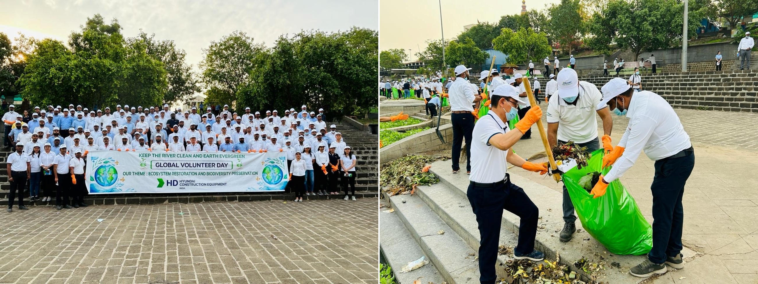 HD현대인프라코어 연태법인은 빈곤 지역 청소년에게 배움의 기회를 제공하는 ‘희망소학교’ 프로그램의 일환으로 현지 학교를 찾아 생물다양성 보호 교육과 레크리에이션 활동을 진행, ‘생물다양성의 날’의 의미를 전파했다. HD현대건설기계 인도법인은 200여 명의 임직원이 푸네 근방의 강변에서 환경정화 활동을 펼쳤다.