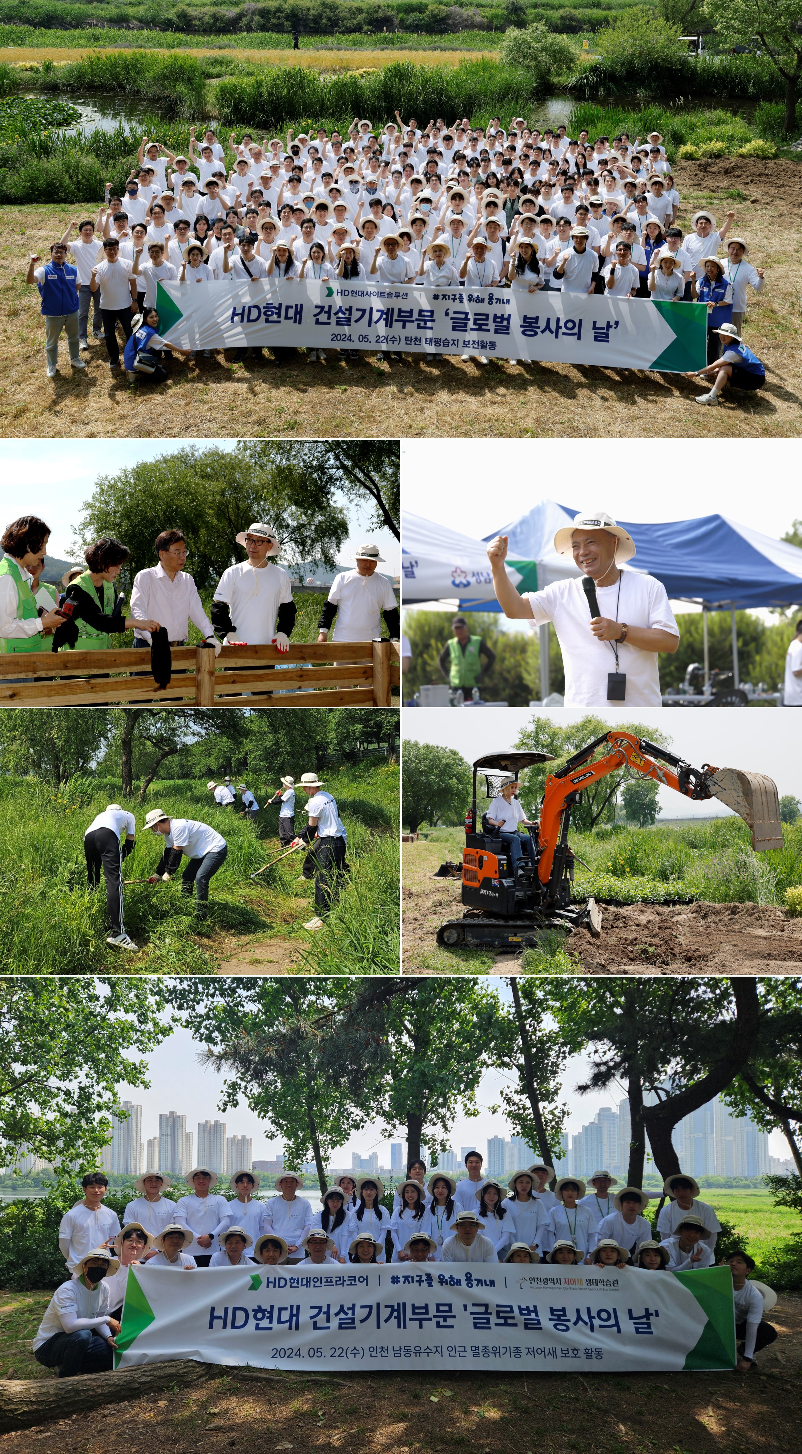 HD현대사이트솔루션, HD현대건설기계, HD현대인프라코어는 22일(수) 한국을 비롯, 중국, 인도, 미국, 인도네시아 등 전 세계 총 8개국 1,300여 명의 임직원이 참여한 가운데 사업장 인근의 바다, 숲, 하천 등지를 찾아 환경정화 활동 및 생태계 보전에 나섰다.