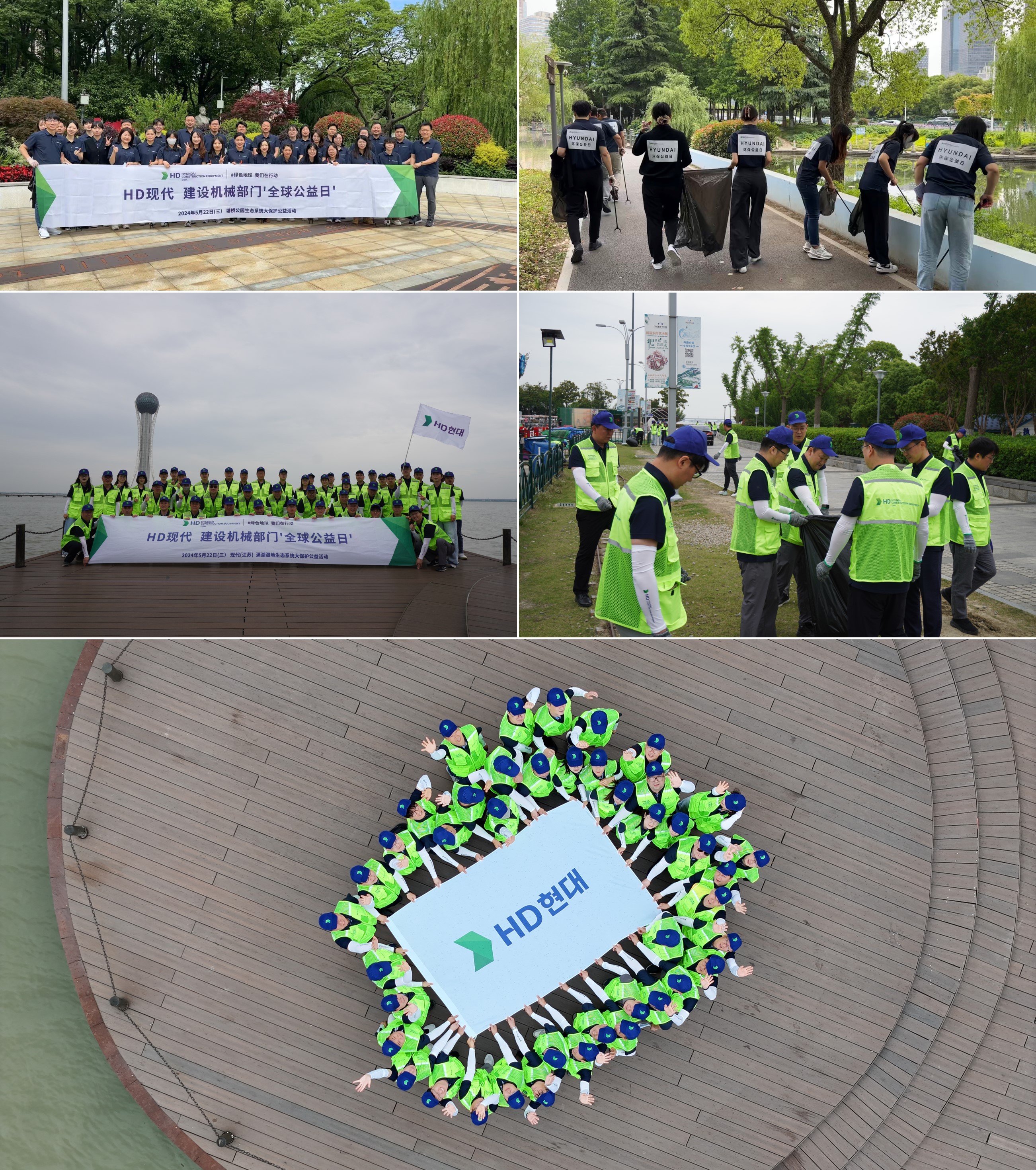 △ HD현대건설기계 중국 사업장 임직원들이 상해법인 인근과 서태호 정화 봉사에 참여하는 모습