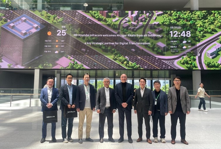 HD현대인프라코어가 지난 5월 31일 HD현대 글로벌R&D센터에서 미국의 인공지능 플랫폼 기업 오나인솔루션즈(o9 Solutions)와 디지털 트랜스포메이션(Digital Transformation) 관련 간담회를 가졌다.
