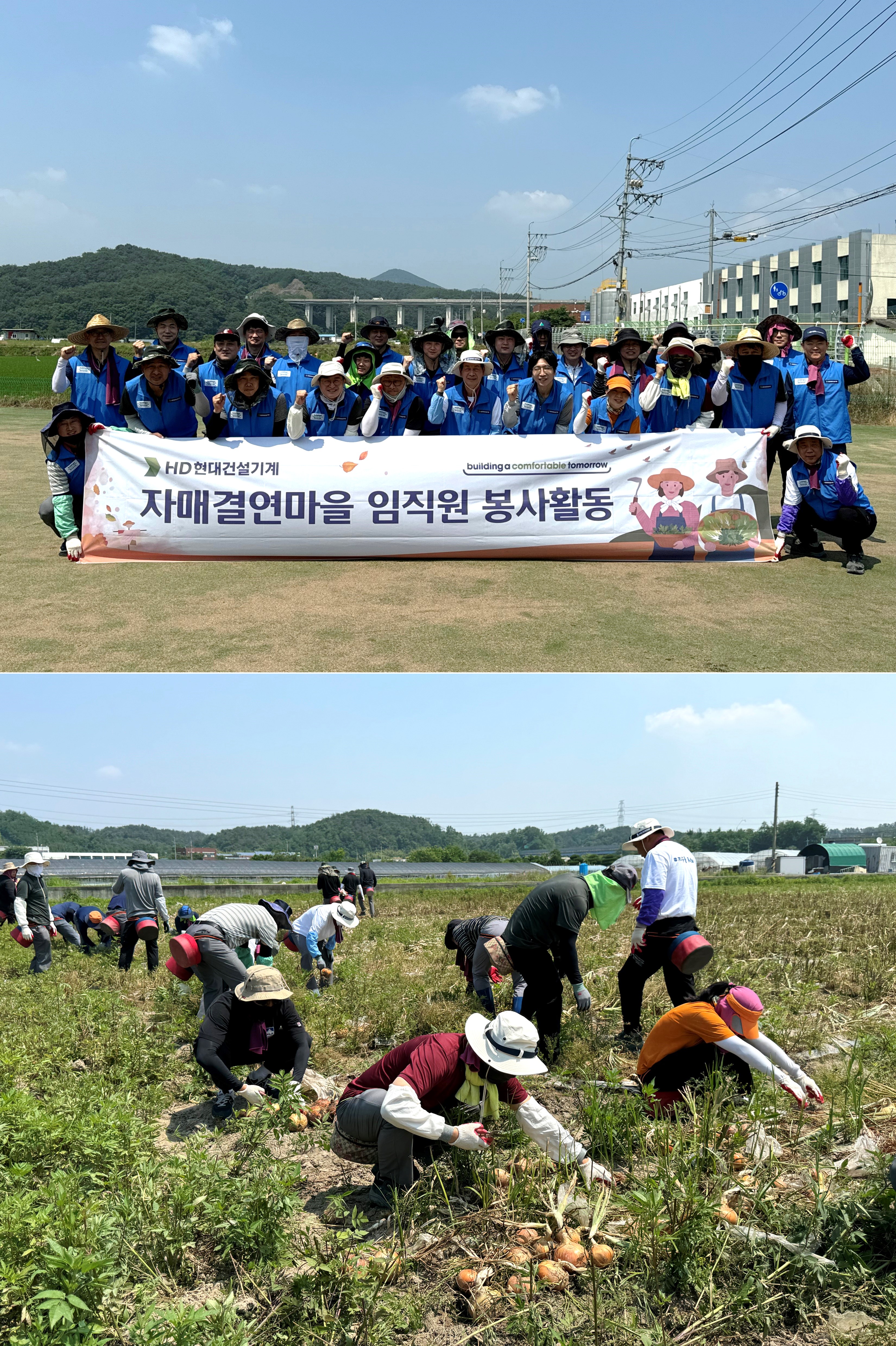 HD현대건설기계 울산캠퍼스 직원들이 지난 6월 12일 자매결연 마을인 울주군 청량읍 소재 양동마을을 찾아 양파 수확을 돕는 봉사활동을 펼쳤다.