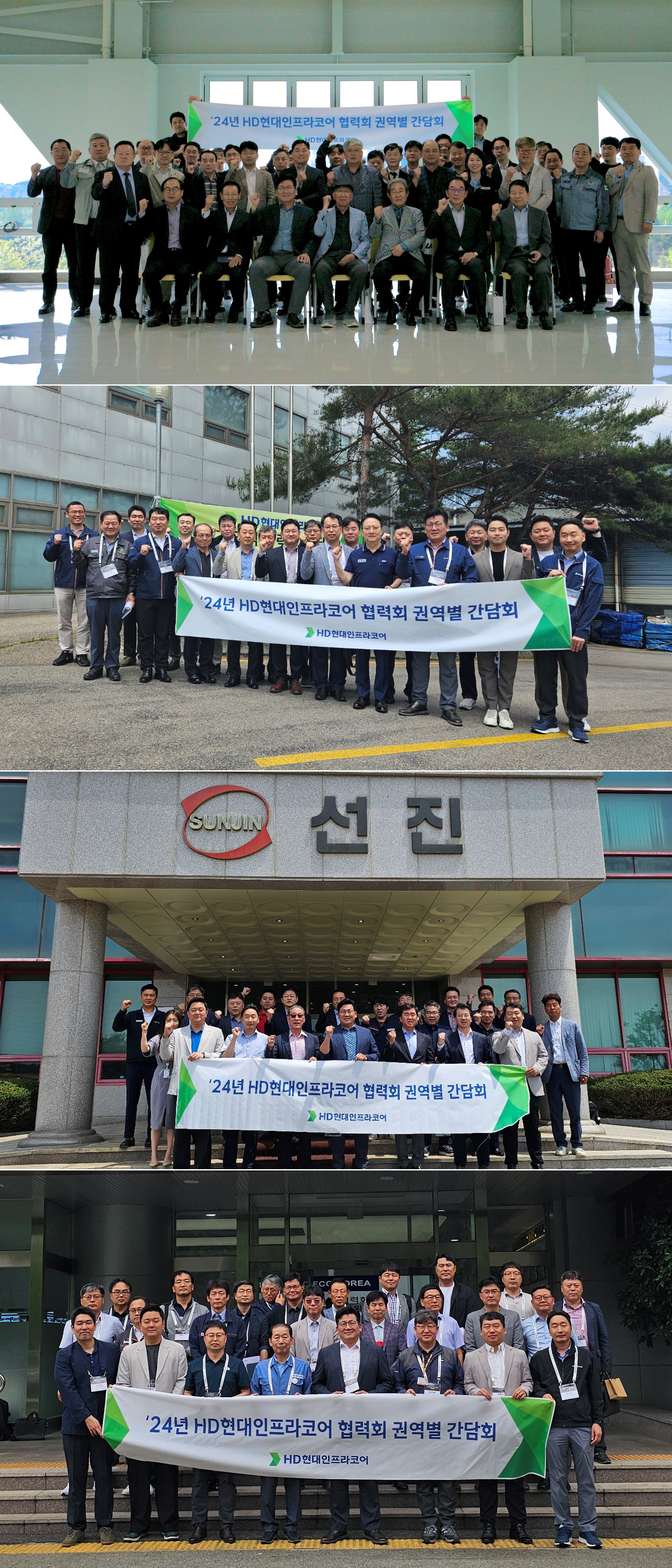△ HD현대인프라코어가 지난 5월 14일부터 6월 21일까지 총 4회에 걸쳐 협력회 회원사 권역별 간담회를 실시했다. (위부터 인천 디와이솔루텍, 화성 신한발브공업, 천안 선진정공, 양산 파카하니핀커넥터)