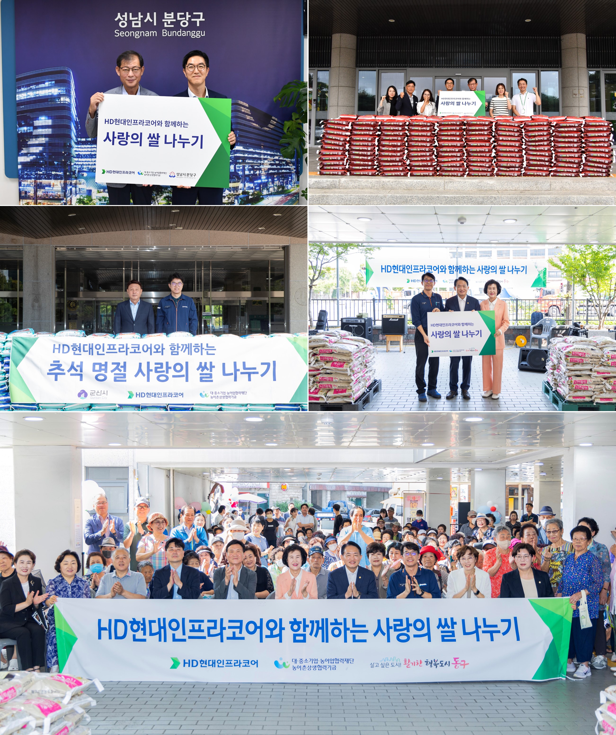 HD현대인프라코어는 9월 6일 성남 분당구청, 10일 군산시청, 11일 인천 화수정원마을 협동조합에서 각각 전달식을 갖고 10kg 쌀 1,400포(4,500만원 상당)를 사업장 인근의 소외계층과 복지기관 등에 전달했다.