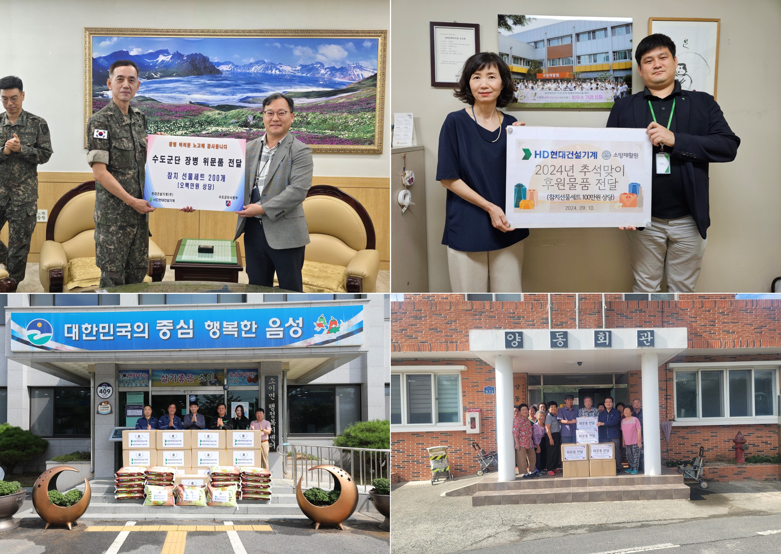 - HD현대건설기계, 김치 및 생활용품, 식품 선물세트, 후원금(총 4,800만원 상당) 등 전달