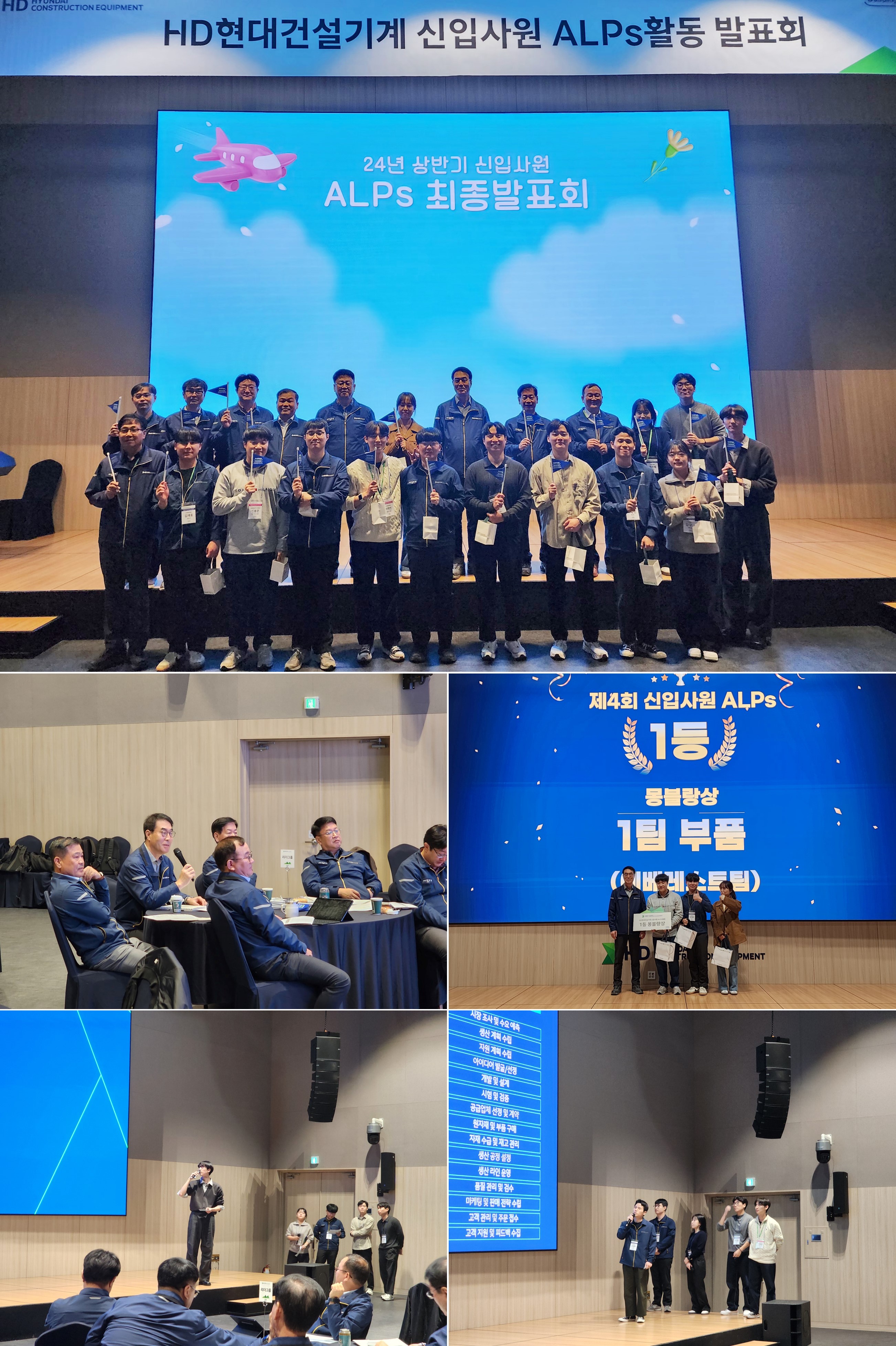 HD현대건설기계가 11월 15일 울산 GOC 대강당에서 ‘제4회 알프스(ALPs, Advanced Learning of Product and Process) 활동 최종발표회’를 실시했다. 최철곤 사장을 비롯해 생산, 품질, 구매, 제품개발 부문장이 참석한 가운데, 7월에 입사한 신입사원 13명이 팀별로 추진한 과제에 대해 발표에 나섰다.