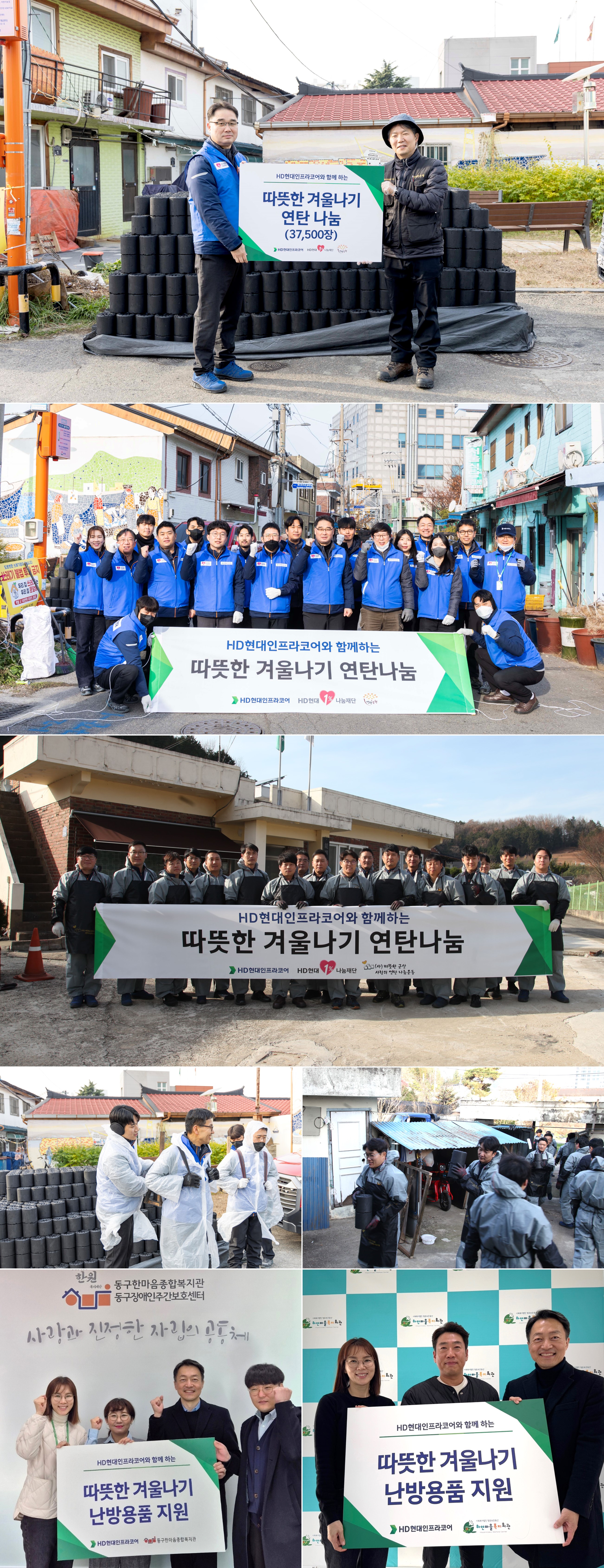 HD현대인프라코어는 지난 12월 11일 인천 동구 화수동 화수부두마을에서 인천연탄은행에 연탄 3만4,480장을 기탁했다. 군산에서는 사단법인 따뜻한군산 사랑의연탄 나눔운동 측에 연탄 1만1,110장을 기탁했다.